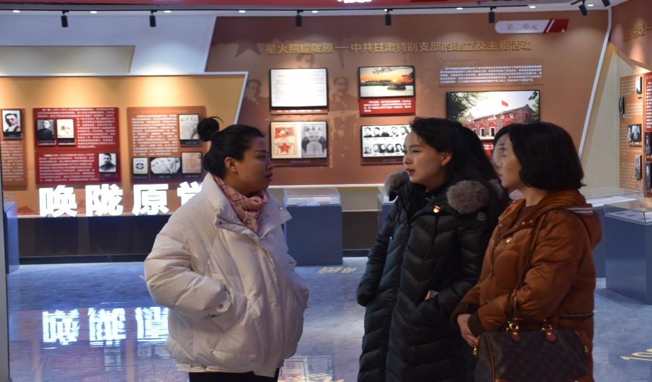 随后,在讲解员的带领下,同学们详细了解了甘肃第一个农村基层党支部的建立过程,深入学习了秦陇革命火种的播种者张一悟、王孝锡等浴血播种、大义凛然的无畏和斗争精神。大家在参观学习过程中互相交流,立足各自实际和特点,就主题教育开展以来的学习心得与体会进行了分享,并就如何进一步发挥党支部的战斗堡垒作用和党员先锋模范作用进行了深入交流。