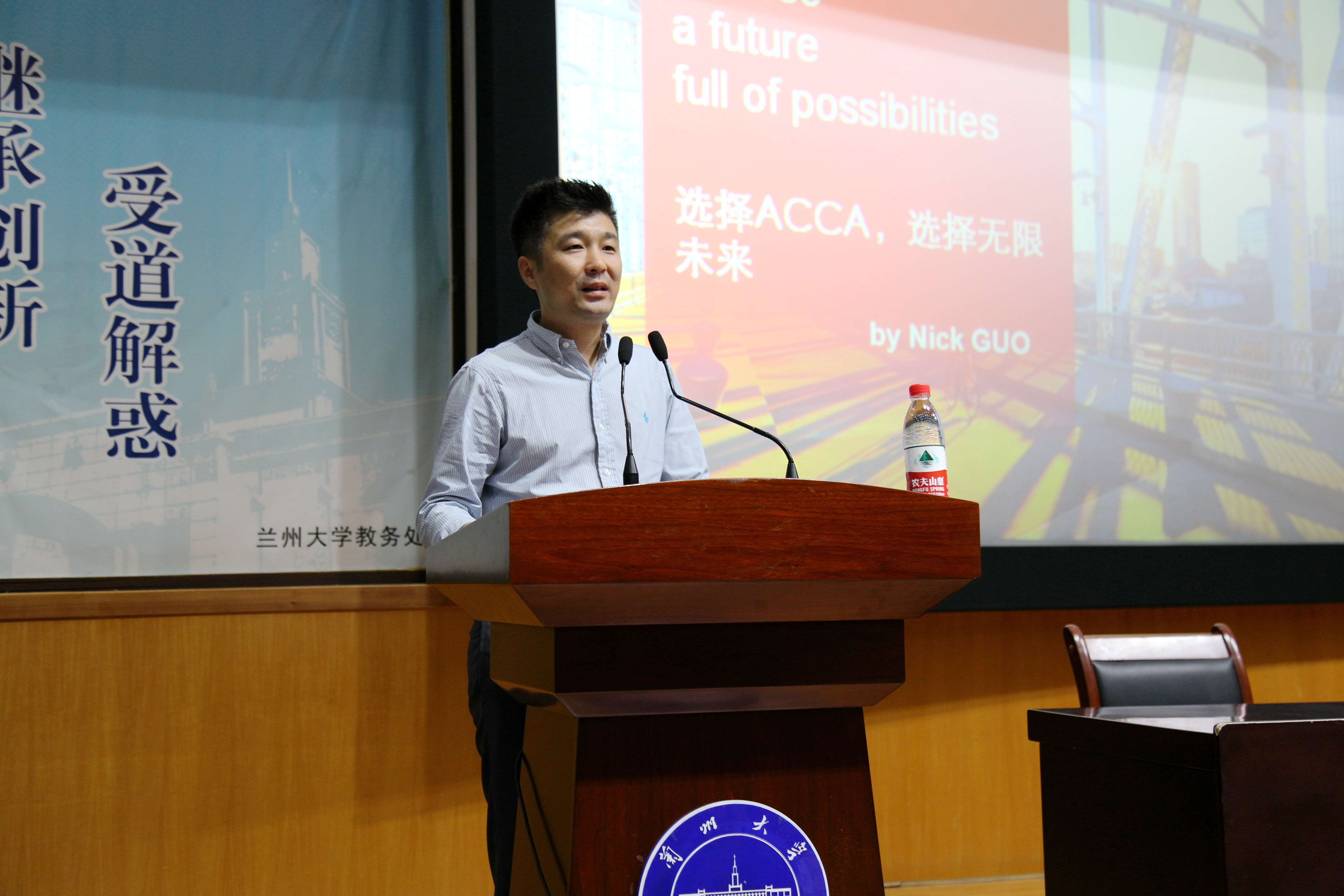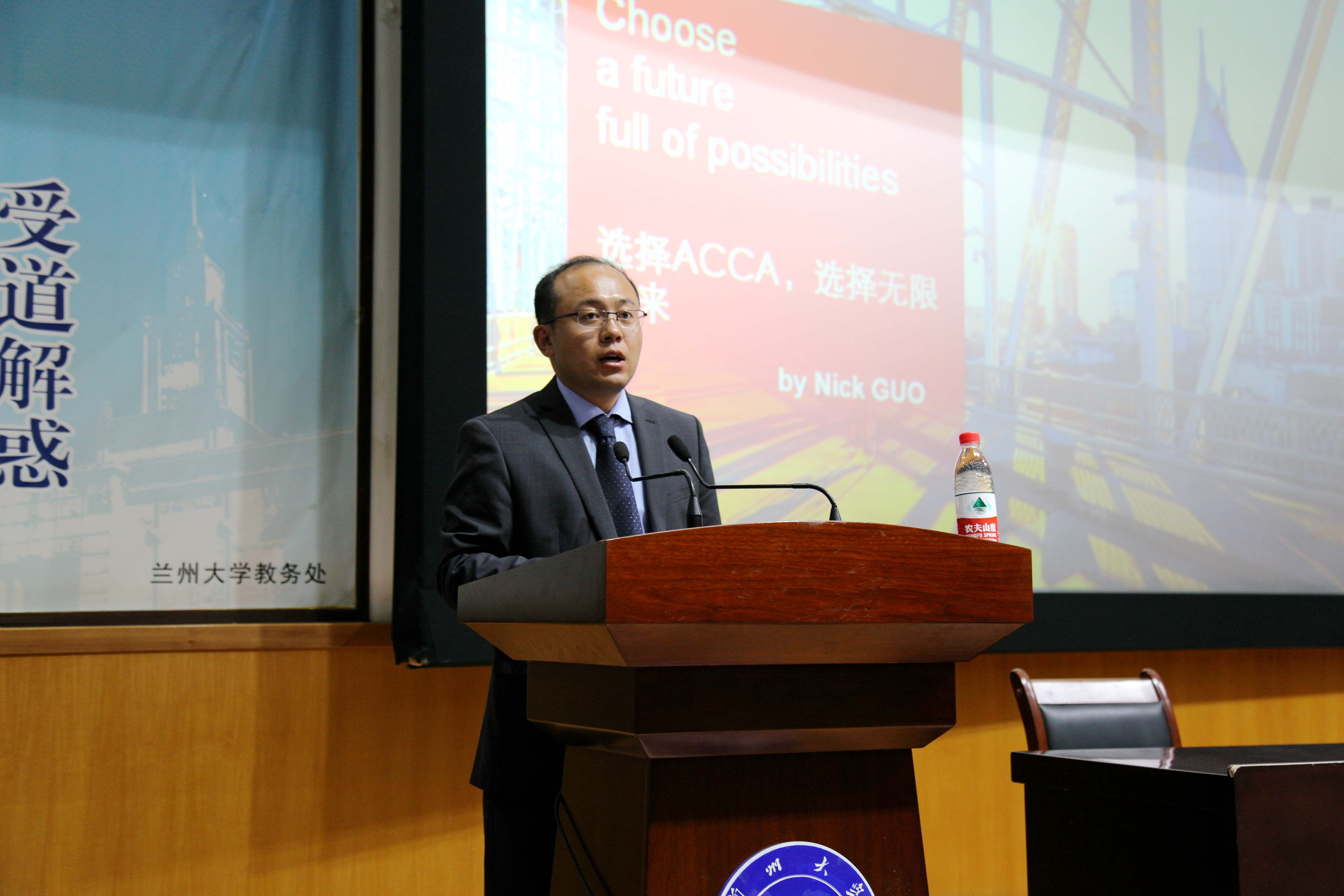 9月5日晚8:30,兰州大学管理学院2017级会计学专业ACCA方向班招生宣讲会在榆中校区天山堂C302顺利举办。管理学院副院长王学军、ACCA北京代表处郭涛、ACCA项目秘书李玫、2016级专职辅导员霍达、2017级部分新生及家长参加了此次宣讲会。本次宣讲会由管理学院副院长王学军主持。
