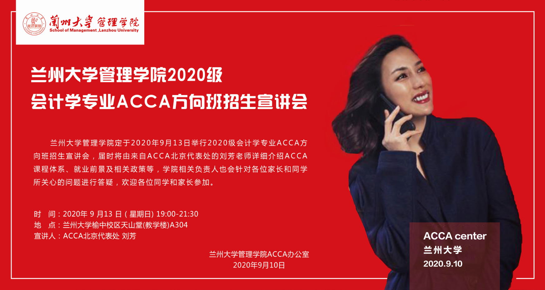 兰州大学管理学院2020级会计学专业ACCA方向班招生宣讲会