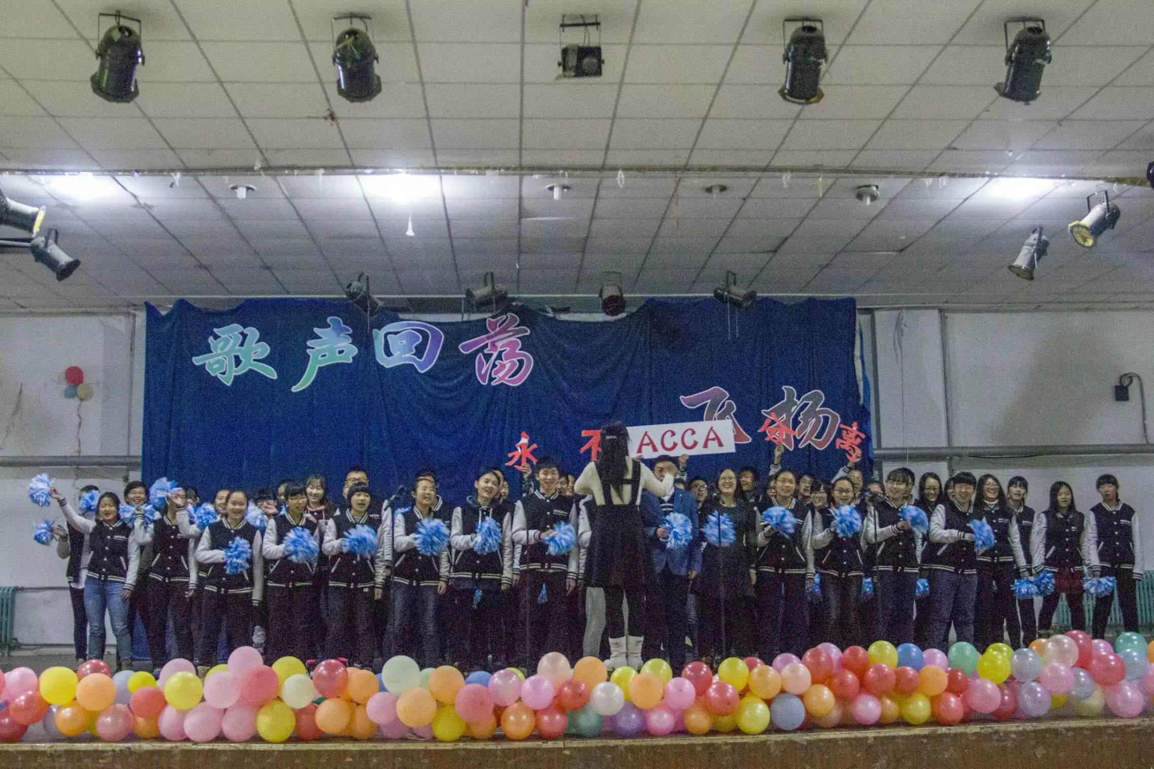 ACCA的同学们被安排在第7个出场,前面的6个节目中,别的班的同学们的歌声或嘹亮、或豪迈、或激荡、或婉转,可谓精彩纷呈。在为前面节目鼓掌的过程中,同学们也坚定了自己的信心,在弹幕屏上刷出了“ACCA,永不分离”的口号。他们知道经过了那么多次的排练,他们不会输给任何人!