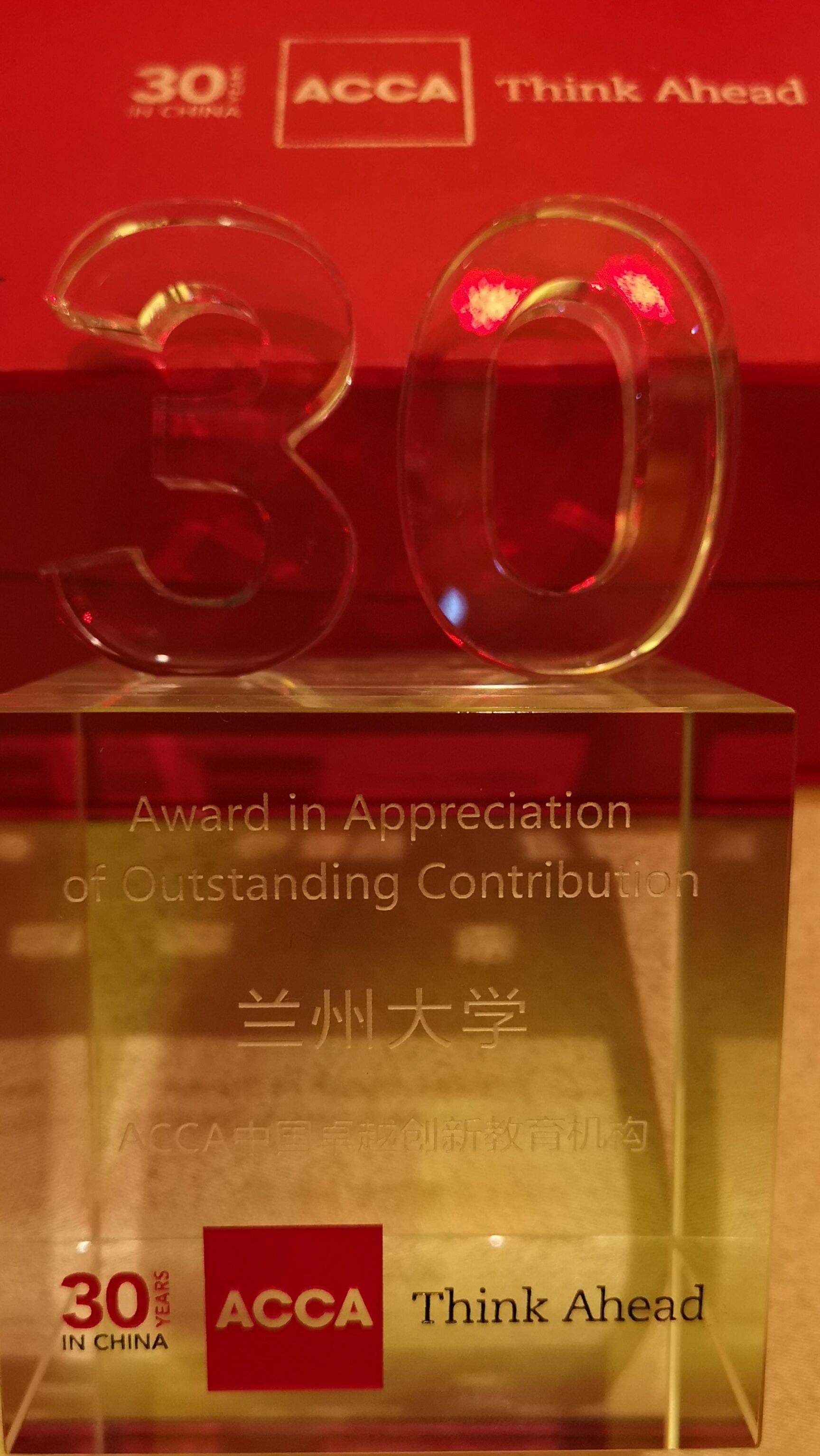 2018年6月22日,ACCA(特许公认会计师公会)全球高峰论坛在北京圆满落幕。为表彰中国合作院校对ACCA发展做出的卓越贡献,ACCA举行了盛大的颁奖典礼,兰州大学荣获ACCA中国卓越创新教育机构奖。ACCA全球会长Leo Lee先生和ACCA行政总裁Helen Brand女士共同为兰州大学颁发了奖杯,管理学院副院长王学军作为代表领奖。