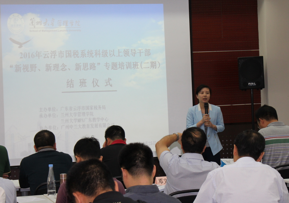 8月15日至8月27日,兰州大学2016年云浮市国税系统领导干部 “新视野、新理念、新思路”专题培训班在兰州大学顺利举行,培训班由广东省云浮市国家税务局主办,兰州大学管理学院、兰州大学MPA广东教学中心承办。、