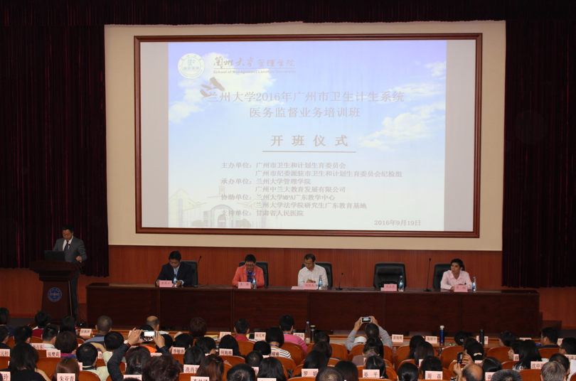9月19日,2016年广州市卫生计生系统医务监督业务培训班在兰州大学管理学院顺利拉开帷幕,来自全市卫生计生系统200多名领导干部及医务监督人员参加了本期培训。该班由广州市卫生和计划生育委员会、广州市纪委派驻市卫生和计划生育委员会纪检组主办,兰大管理学院、中兰大教育共同承办,兰大MPA广东教学中心协办。广州市卫生和计划生育委员会党组成员、副主任胡丙杰、广州市纪委派驻市卫计委纪检组李博副主任、兰州大学管理学院党委副书记沈正虎、兰大MPA教育中心副主任兼广东中心(基地)主任、中兰大教育发展首席顾问李柏老师出席了开班仪式。开班仪式由兰大战略与绩效管理研究所副所长、博士生导师张国兴教授主持。