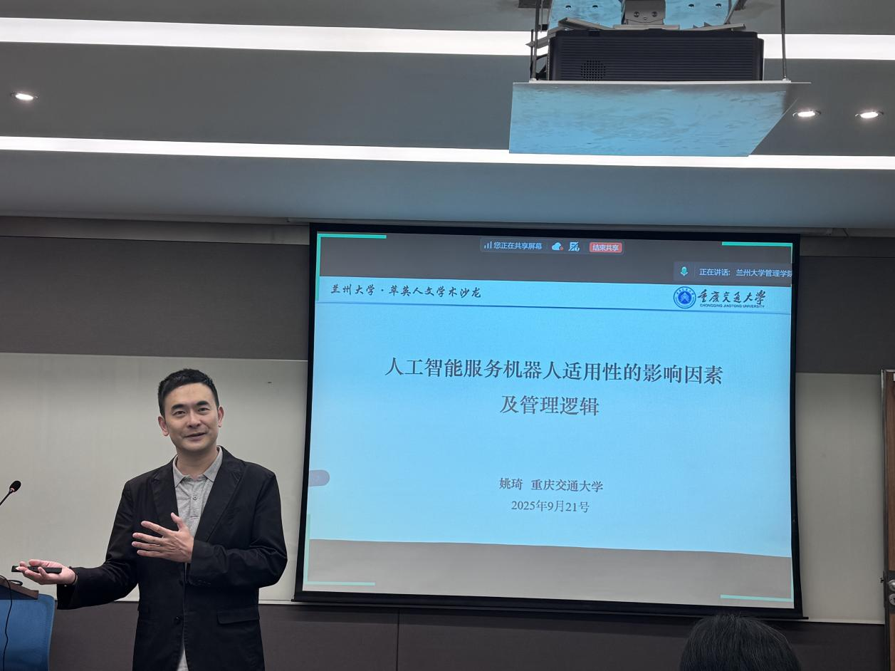 2025年9月21日,兰州大学第四十八期萃英人文学术沙龙在兰州大学城关校区齐云楼204室举办。本期学术沙龙特邀武汉大学寿志钢教授、重庆交通大学姚琦教授、中南财经政法大学项典典副教授,主题是“人工智能和消费者行为研究:前沿理论、方法和前沿专题”。本次讲座由管理学院陆本江副教授、严燕老师、王雪枫老师主持,共有30余名师参会。