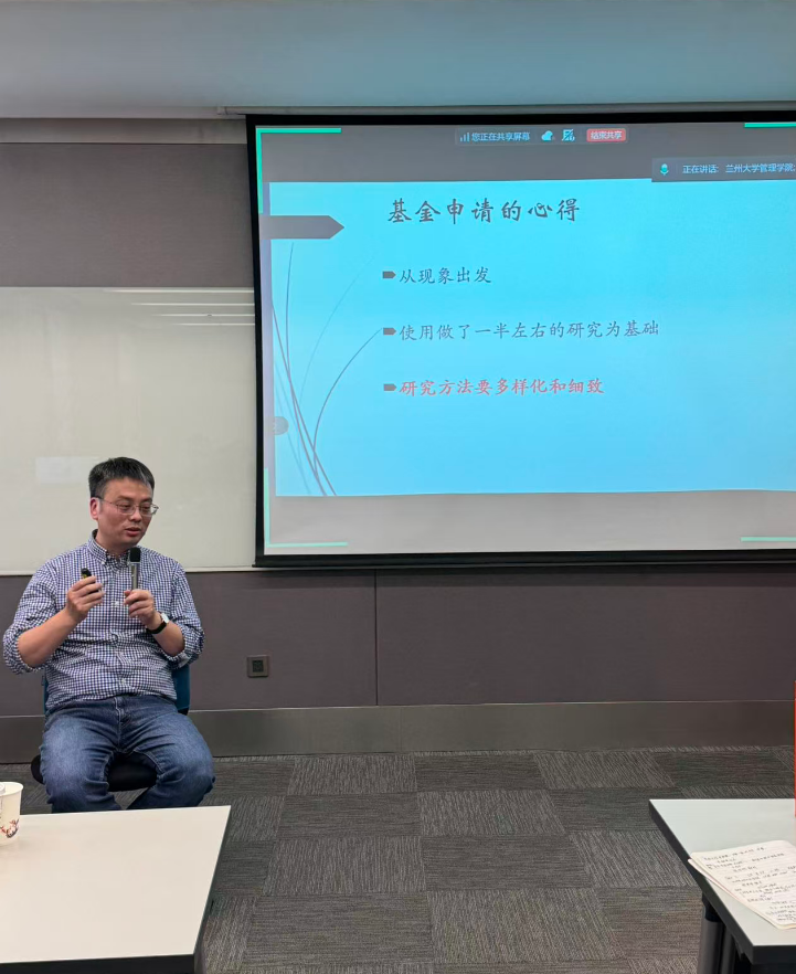 2025年9月21日下午,应兰州大学管理学院数字营销管理研究所邀请,武汉大学寿志钢教授为学院师生带来题为“国家自然科学基金申报经验浅谈”的学术报告。讲座由柳武妹教授主持,学院20余名师生参加了讲座。
