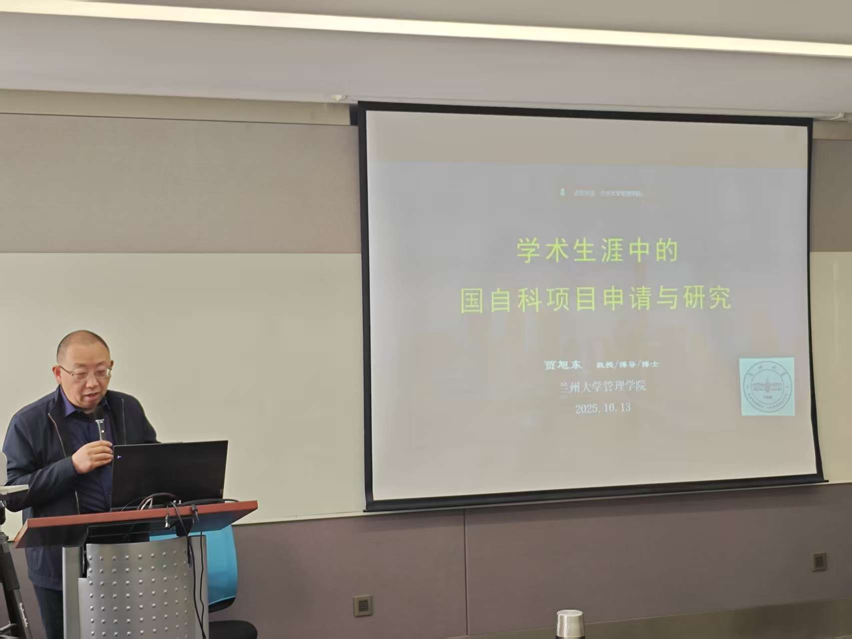2025年10月13日下午,人工智能战略研究所贾旭东教授为学院教师申报国家级项目进行了辅导讲座。讲座由保海旭教授主持,学院师生参加了讲座。