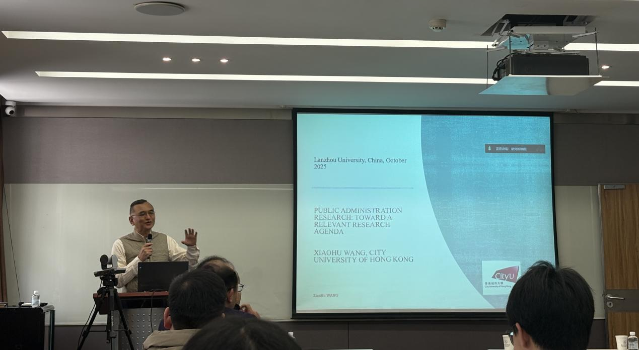 2025年10月25日下午,应兰州大学中国政府绩效管理研究中心邀请,香港城市大学王小虎教授为学院师生开展主题为“研之为用,研之为公:公共行政研究的现实转向与未来议程”的学术报告。讲座由王学军教授主持,研究所20余名师生参加讲座。