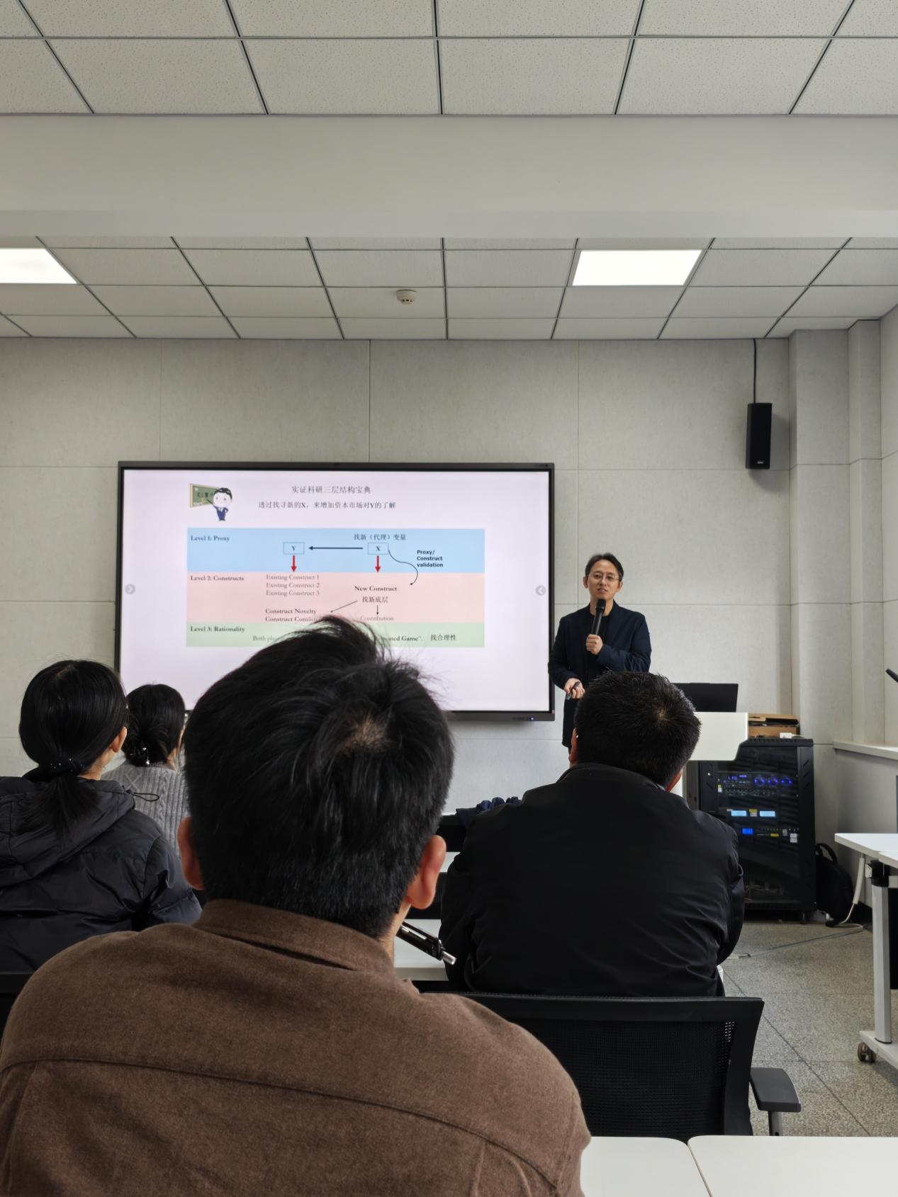 曾晓亮以“如何让实证研究从合格走向卓越”为核心,系统提出“实证科研三层结构宝典”框架,并结合代表性研究案例,层层递进解析每一层的设计逻辑与创新关键。三层结构由浅入深分别为代理变量层、底层结构层、理论支撑层。代理变量分别对应着相应的底层结构,而底层的联系又需要理论支持。随后,他现身说法,分享个人的科研经历,探讨如何明确研究的创新点,以提高研究的学术影响力和实际应用价值。