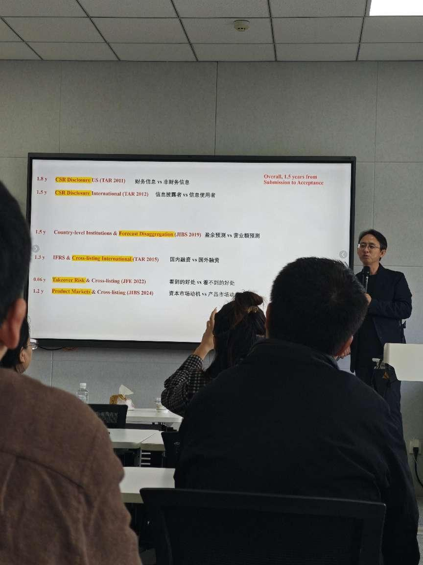 2025年10月27日,应管理学院智能财务管理研究所邀请,南方科技大学商学院曾晓亮教授为学院师生带来题为“会计金融实证科研技巧——如何构建有影响力的科研贡献”的学术讲座,讲座由罗劲博教授主持,多名研究所师生线下参加。
