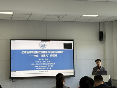 2026年3月28日下午,应兰州大学管理学院公共政策研究所邀请,同济大学邵帅教授为学院师生开展了题为“区域性环境规制政策的隐性污染转移效应”的学术报告。讲座由张国兴教授主持。