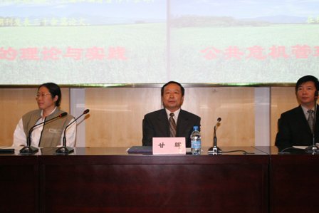 开幕式结束后,高小平博士作了题为《公共危机管理的理论与实践》的首场报告。高教授从公共危机管理的概念和特点、公共安全面临的形势、危机管理的框架三个大方面诠释了危机管理理论,并向师生们详细介绍了当代危机管理研究进展情况。报告中,高教授引经据典,以美国“911”事件、印度洋海啸、“SARS”等事件为例解读了危机管理实践,其幽默的语言、博学的风采引来了在场师生的阵阵掌声。
