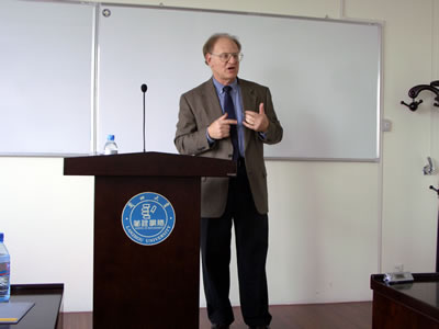 应我校邀请,参加2005财富全球论坛的美国G-Trade Services公司总裁Jonathan Sloan先生于2005年5月17日下午在综合楼11层管理学院学术报告厅作了题为“中国与世界经济”的演讲,演讲会由管理学院院长包国宪教授主持,学校外事处处长余亚佳和管理学院师生近百人参加了此次演讲会。Jonathan Sloan先生在其演讲中就中国参加经济全球化的必要性,以及在全球化中的作用与角色等问题作了深入浅出的讲解,并针对管理学院师生提出的一些热点问题,如中日关系、人民币汇率稳定,中国的银行体系,世界贸易组织与中国等发表了自己的看法。演讲会气氛热烈,取得了预期的效果。