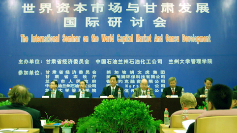 本次国际研讨会的主题是“世界资本市场与甘肃发展”,主要是共同探讨甘肃如何利用国际资本市场来促进自身的发展,通过国内外的交流与合作来推动甘肃省经济更快地融入国际资本市场。研讨会由兰州大学管理学院包国宪院长主持。按照会议议程,甘肃省经济委员会朱行之副主任首先向与会代表和来宾介绍了甘肃工业发展的基本情况。甘肃省农牧厅农业产业处程浩明处长向与会代表介绍了甘肃省特色农产品及产业化发展情况。新加坡胡文虎集团公司总裁和美国美狮环保科技公司总裁的林夏冰先生向与会代表发表了题为“中外合资产业投资模式简介”的演讲。美国美狮环保科技有限公司董事长和挪威NORSHOW及FIBA公司主席的约翰•爱立生先生也同与会代表分享了自己对于加快外商在甘肃投资的一些想法和建议。最后由香港约克融资有限公司项目部主任陈海光先生介绍中小企业如何争取海外上市,并表示愿意协助希望在海外上市的甘肃省内企业。嘉宾演讲结束后,来自新加坡、香港、美国和挪威的专家与听众进行了交流互动。
