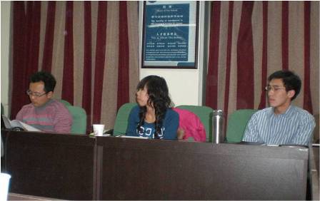 1月8日晚6:30,兰州大学第二届研究生学术年会管理学院管理学院分论坛优秀论文报告会在齐云楼1212学术讨论室隆重举行。优秀论文一等奖获得者王学军、刘红芹和博士研究生特等助学金获得者周云飞分别作了题为《A brief analysis on the research of service science in western countries》、《三种视角下的公共危机管理协调联动机制的优化》、《中国政府绩效评价:回顾与展望》的主题报告。论文报告会评议人由我院青年教师贾旭东博士、单菲菲博士担任,报告会由我院研究生会学术部部长陈晓洪同学主持。