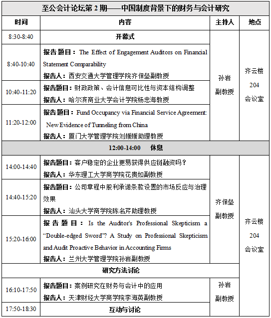 至公会计论坛第2期——中国制度背景下的财务与会计研究