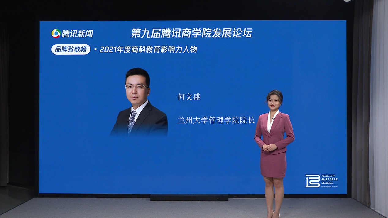 2021年12月8日-9日,腾讯新闻主办的第九届腾讯商学院发展论坛顺利召开。多位商科教育行业内的优秀头部力量与权威专家学者相聚云端,着力结合当前全球经济形势,精准聚焦时下商科教育行业痛点及热点问题,助推商科教育可持续性发展。兰州大学管理学院何文盛院长受邀出席第九届腾讯商学院发展论坛,并荣获“2021年度商科教育影响力人物”,兰州大学管理学院荣获“2021年度综合影响力MBA项目”。
