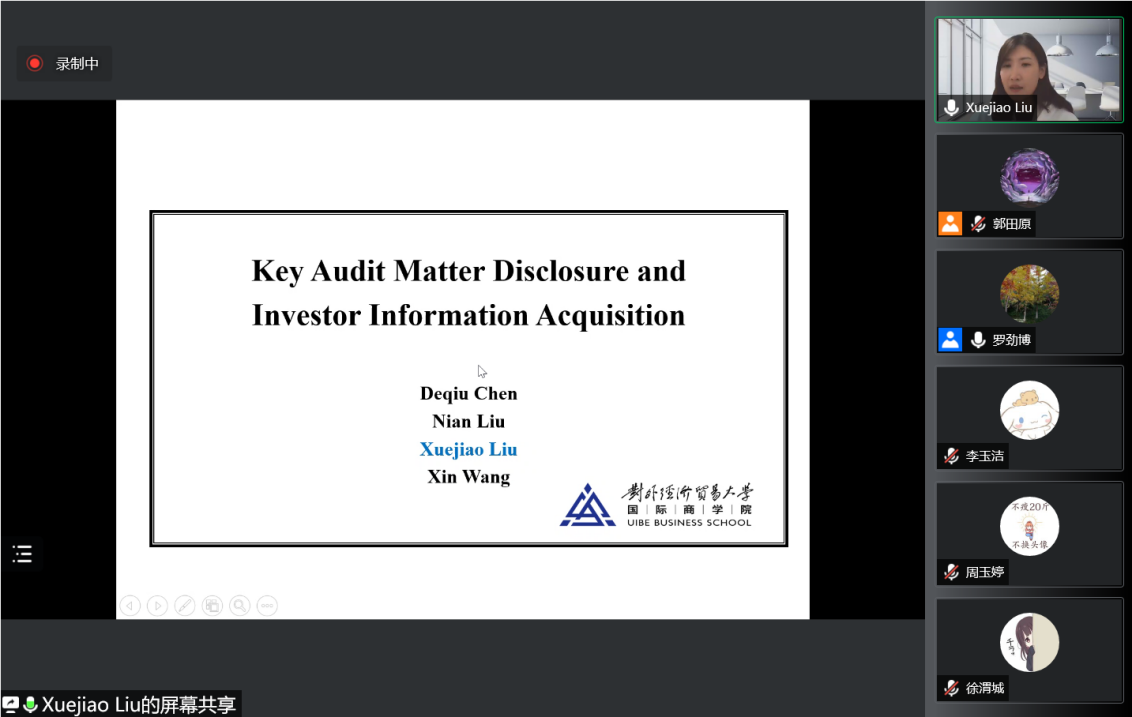 12月22日,应管理学院运营与财务管理研究所罗劲博教授邀请,对外经济贸易大学刘雪娇教授做客兰州大学管理学院第24期至公会计论坛,带来题为“Key Audit Matter Disclosure and Investor Information Acquisition(关键审计事项披露与投资者信息获取)”的线上讲座。讲座由罗劲博教授主持。