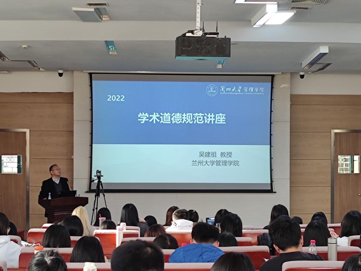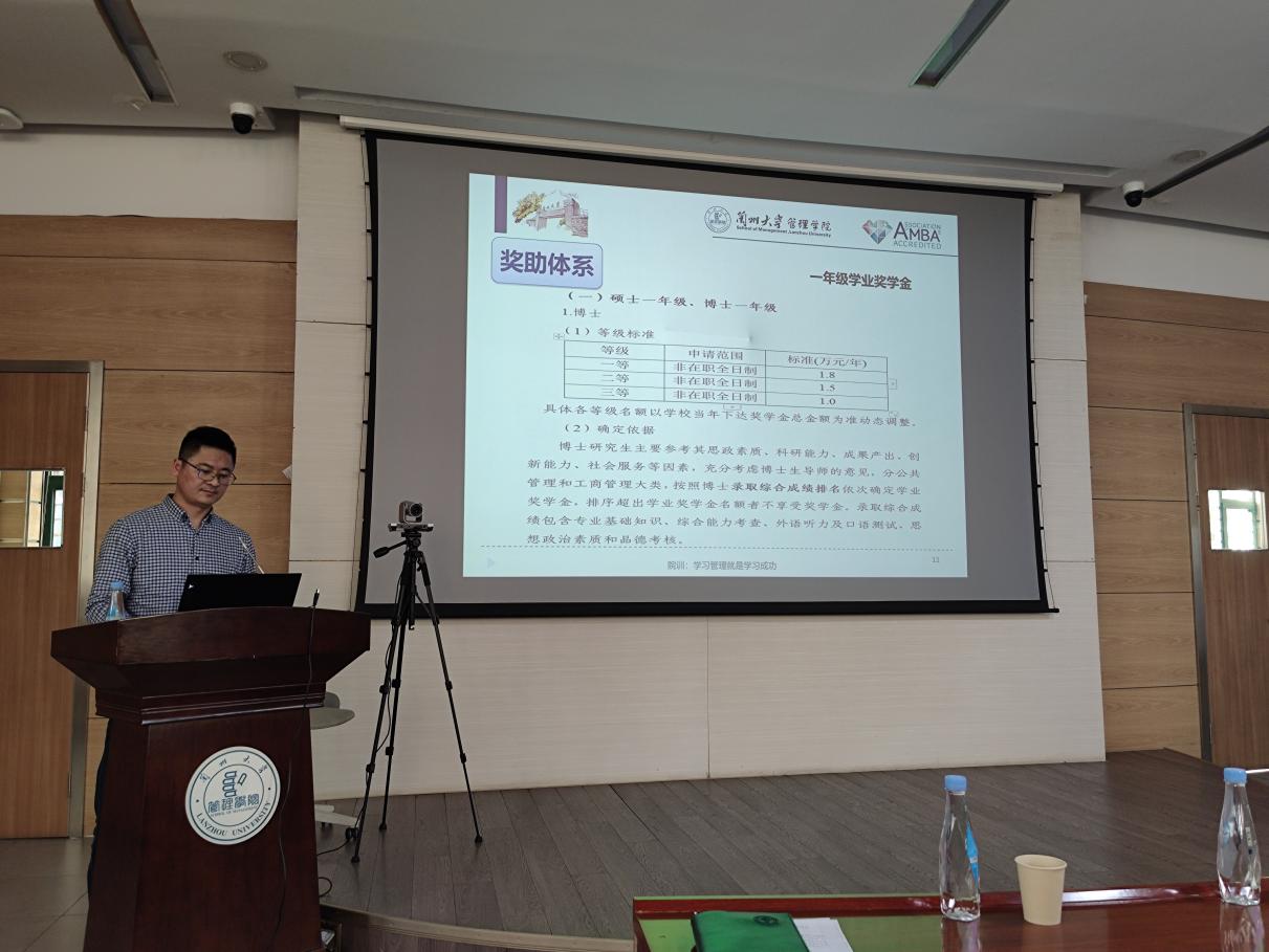 常韬对学术型研究生在校期间的日常管理、评优体系、评优细则等内容进行了全面介绍,从营造融洽的宿舍关系、建立和谐的导学关系、践行诚信等方面做了总结,希望管院学子都能在兰大度过充实快乐的研究生生活。