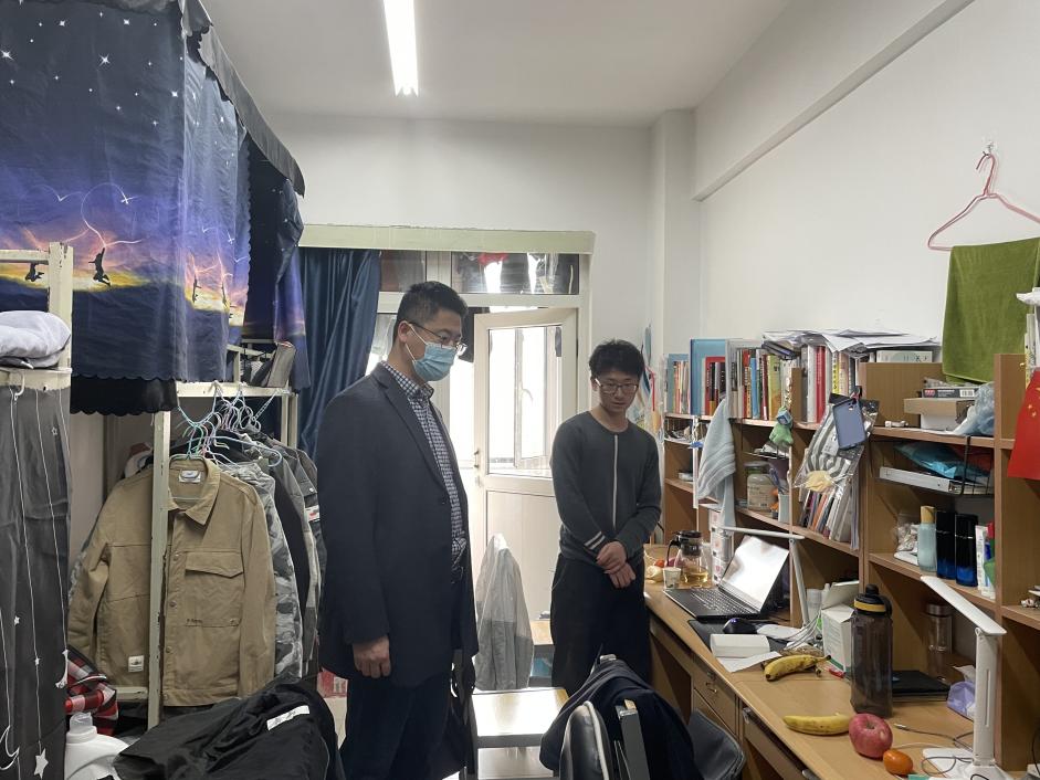 在走访过程中,常韬对研究生宿舍的卫生和安全情况做了仔细检查,以3月2日清华大学紫荆学生宿舍违规使用电器导致失火的事件为例,教育引导同学们引以为戒,注意用电安全,切勿使用大功率电器;叮嘱同学们树牢疫情防控常态化责任意识,按时健康打卡,做好个人防护,尽可能减少在人群密集场所聚集,做好校园疫情防控工作。此外,他还开展了网络安全和防范电信诈骗安全教育,提醒同学们谨防电信诈骗,确保个人财产安全。