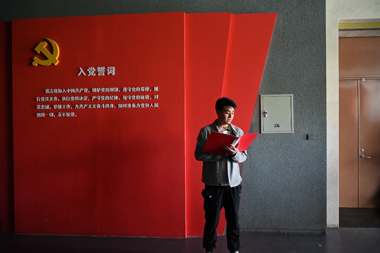 在研究生第三党支部书记李万琦的带领下,全体师生高举右拳,齐诵入党誓词,铮铮誓言,既是对入党初心的回顾和洗礼,也是对使命担当的承诺和信心。