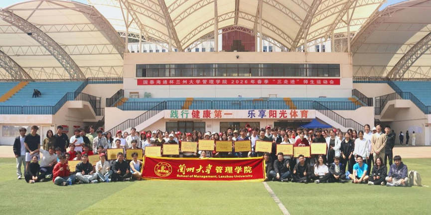 为深入践行“三走进”工作理念,进一步增进师生情谊,凝聚集体力量,营造积极向上、健康和谐的校园文化氛围,4月11日,“国泰海通杯”兰州大学管理学院2026年春季“三走进”师生运动会在榆中校区西区田径场举行。国泰海通证券甘肃分公司党委书记、总经理安定及职工代表,管理学院党委书记刘亚军,副院长赵雁海,副书记、副院长常韬及“三走进”教师、班主任、辅导员和教学秘书出席开幕式,开幕式由学院党委副书记王萍主持。