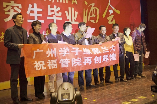 酒会由兰州大学MBA联合会主办,毕业班的同学们和师弟师妹们以及留学生们倾情奉献了一台精彩的晚会,现场的微博互动使会场气氛更加热烈。为传承和发扬兰州大学管理学院学生热心社会公益活动的传统,EMBA的毕业生还发起倡议,捐资建立“EMBA爱心公益基金”及“EMBA爱心林”。