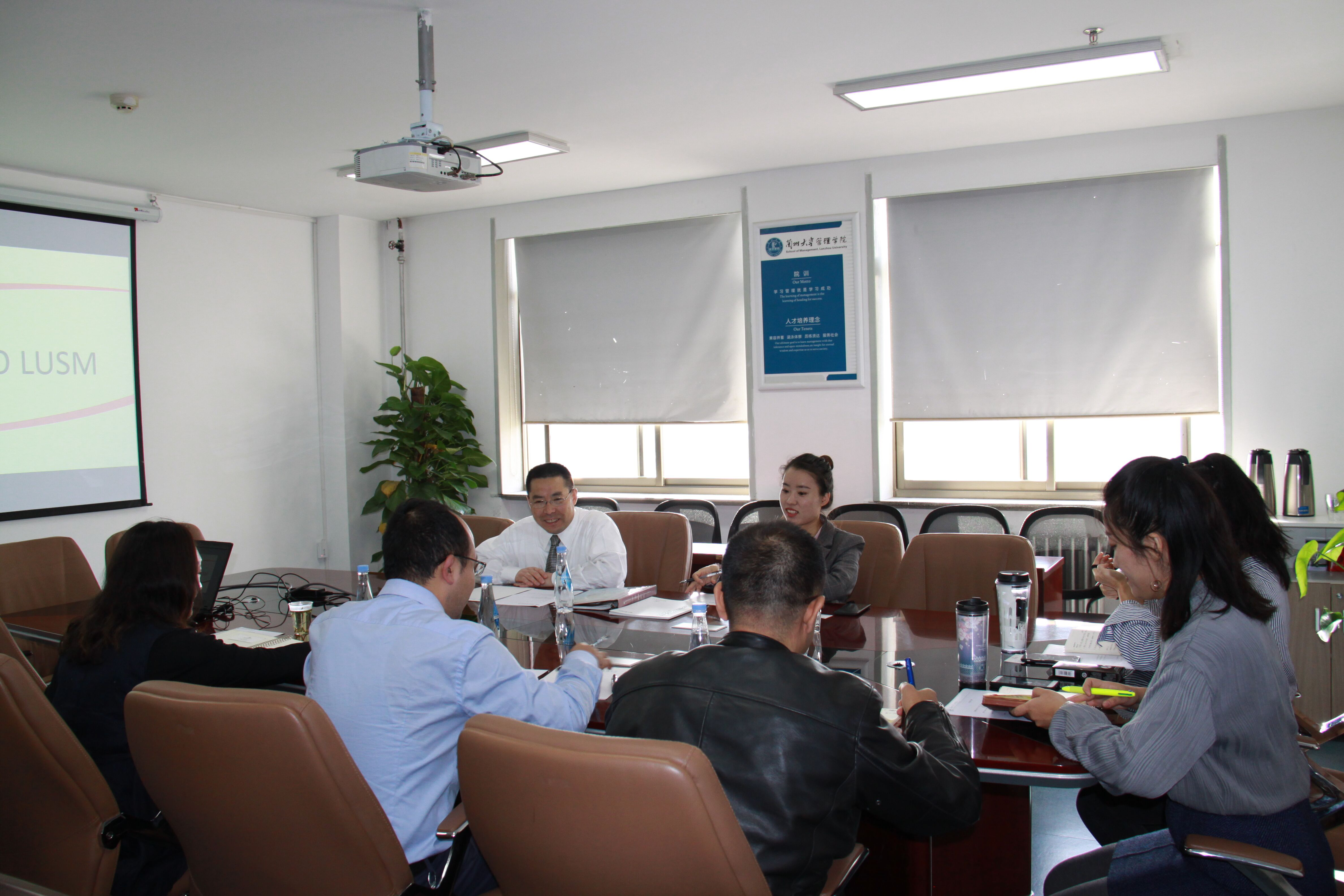 王学军副院长对John Chen教授一行的来访表示欢迎,他介绍了管理学院的基本情况,希望通过此次来访交流,建立联系,响应国家“双创”号召,有计划的探讨“双创”主题的培训活动。韩伟副主任简要介绍了兰州大学教师教学发展中心的历史沿革和功能定位,并提出学校在师资培训方面的计划与需求。吴建祖副院长就创新创业和战略管理课程及项目培训的具体模式与来宾进行了探讨。John Chen教授一一回应了讨论中的各个问题,重点介绍了百森商学院在全球师资培训中的特色项目、课程架构、培养模式等,并分享了相关资料。