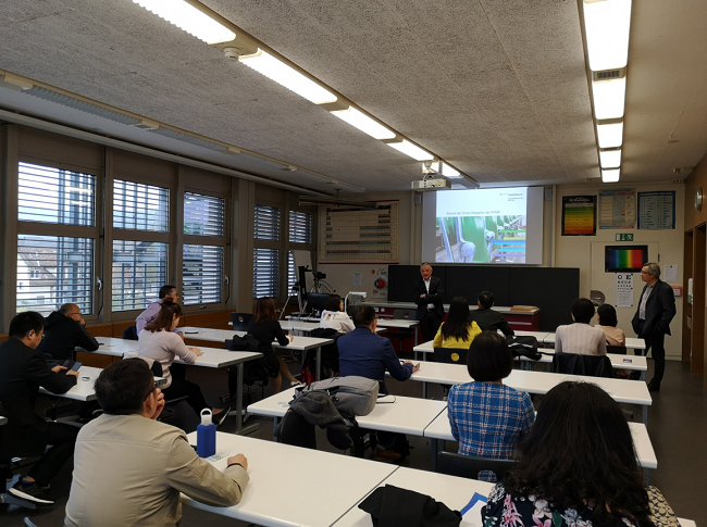 当地时间上午09:30,学员们到达奥尔腾职业教育中心,主任乔治·伯格先生对到访的学员们表示欢迎,并详细介绍了瑞士职业教育体系的发展概况、培养模式、教学特点、现存问题等。课后乔治·伯格先生还带领学员们实地参观了教育中心的计算机研究工作室,让同学们与工作室的老师和同学现场进行交流探讨。