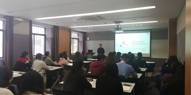 应运营与财务管理研究所、会计学系万红波副教授邀请,用友政务甘肃客户服务中心技术总监张永翔先生于2018年10月20日下午14:30-17:30在齐云楼204室为我院师生带来了“新政府会计制度背景下的政务软件应用与发展”的报告。此次报告由万红波副教授主持,慧瑞科技王总经理、李总顾问、张永翔总监以及用友政务部分员工,我院会计学系孙岩主任、罗云中和王雷几位老师以及MPAcc和会计学硕士全体学生参加此次报告。