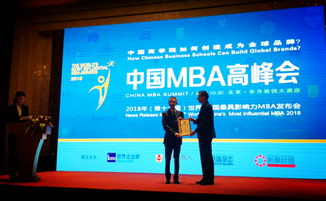 由世界企业家集团、《总裁》杂志社联合编制的2018年(第十六届) “中国最具影响力MBA排行榜”于10月16日发布,兰州大学管理学院位居第八,已连续十年进入该榜单前十位。在10月30日于北京召开的“中国MBA高峰会暨颁奖典礼”上,赵雁海副教授代表管理学院领取奖牌,并就“国际认证和MBA教育质量持续提升”发表演讲。