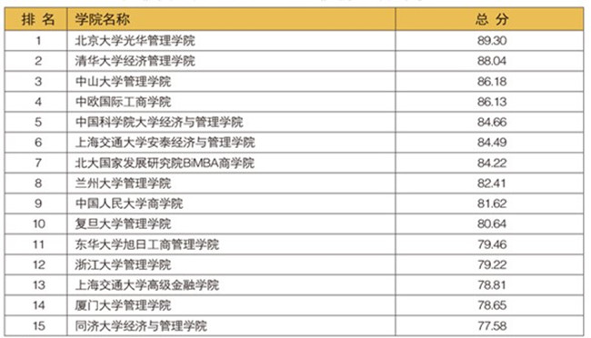 2018年《中国最具影响力MBA》前15名名单
