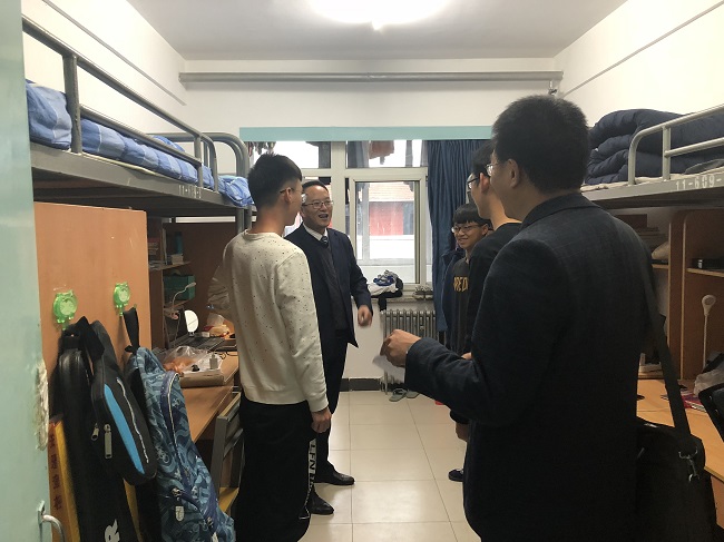 在走访过程中,党委书记姚成福、班主任老师首先看望了自己联系的学生宿舍,与同学们亲切交谈,询问学习、生活近况以及有无需要帮助解决的困难等。姚书记关切地对同学们说:“虽然家长在远方不能及时照顾你们,但是有任何事情都可以联系老师。”随后,大家还走访了学院的其他学生宿舍,叮嘱同学们好好学习,做好规划,注意安全。同学们与老师们交流过程中也表示要在生活和学业上积极进取,更加努力。