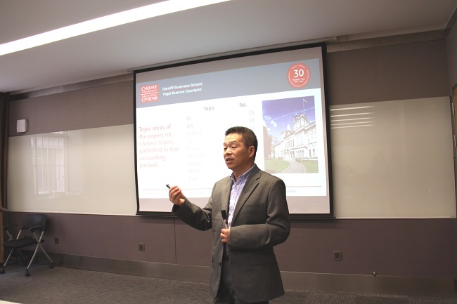 2018年11月11日上午,我院至公会计论坛第6期在齐云楼204会议室顺利举行。本期论坛应管理学院运营与财务管理研究所、会计学系主任孙岩教授邀请,英国卡迪夫大学商学院肖泽忠教授为我院师生带来了题为“Publishing China Studies in International Accounting Journals”的讲座。本次论坛由我校杨肃昌教授主持,会计系主任孙岩教授及会计系其他师生参加了此次讲座。