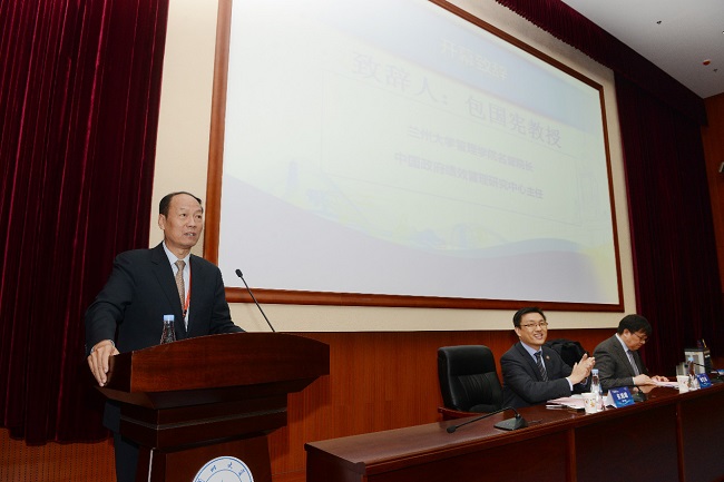 包国宪教授在致辞中说,中国公共管理学术年会暨青年学者论坛由中国管理现代化研究会公共管理专业委员会和中国管理现代化研究会青年工作委员会于2015年发起举办,目前已发展为我国公共管理领域最有影响力的学术会议之一,正值兰州大学建校110周年和兰州大学管理学院建院15周年之际,兰州大学管理学院获得2018年中国公共管理学术年会暨第四届青年学者论坛的承办权,是对兰州大学管理学院和兰州大学公共管理学科发展的认可和肯定。他强调,随着我国经济、政治、社会建设逐渐步入“新常态”,发展中的公共管理学也面临着全新的机遇和挑战。在社会转型的大背景下,加强公共管理研究、提高公共管理水平、培养公共管理人才,也就成为了促进社会全面进步、实现国家治理能力现代化的历史性任务。今日汇聚众多国内外知名的专家学者,尤其是国内青年公共管理学者齐聚兰州,深入探讨公共治理与绩效发展的热点问题,将前沿的研究方法与重要现实问题相结合,进一步加强国内外公共管理学学者学术交流,进一步推动我国公共治理与绩效管理学术研究向纵深发展。