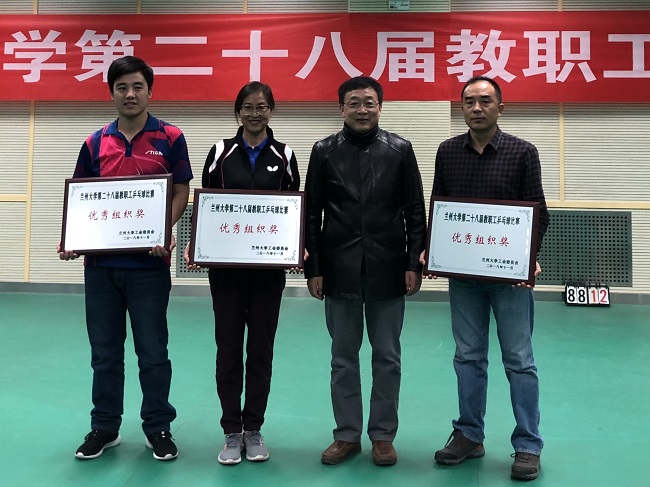 管理学院组队参加学校第二十八届教职工乒乓球比赛 来源:工会 作者:李艳霞 审核:李艳霞 发布时间:2018-11-27 18:01:14 浏览次数: 次 【字体:小 大】 近日,学校第二十八届教职工乒乓球比赛在城关校区西区新体育馆举行,管理学院组队参加了比赛。管理学院参赛代表队由白建明、高学德、李一男、刘晓龙、沈孝强、毛雪雯、马宁、徐菁等八位老师组成。赛前,大家积极备战,多次开展训练。比赛过程中,参赛队员团结协作、勇于拼搏,很好地展现了管院教职员工昂扬向上的精神面貌,最终被授予“优秀组织奖”。 分享到: 【打印正文】