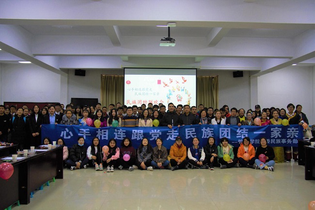 管理学院现有少数民族学生171人,其中少数民族本科生152人,人数位居全校前列。学院历来重视少数民族学生的教育和培养,2013年5月在学院团委增设“民族事务部”,全力协助开展少数民族学生教育和管理。经过多年的努力,已经形成了以理想信念教育为核心、社会主义核心价值观为引领、爱国主义教育为重点、学生全面发展为目标的系列主题教育活动体系,切实引导少数民族学生坚定跟党走、立志成才,取得累累硕果。