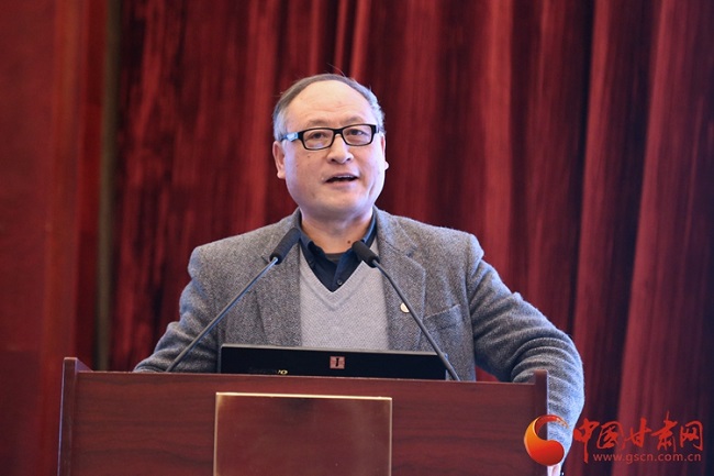 兰州大学管理学院院长何文盛教授代表兰州大学管理学院发布了2018年度《甘肃产业发展与管理评价报告》。