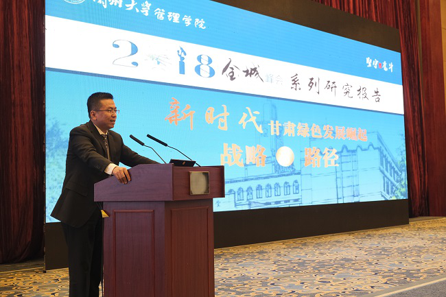 兰州大学管理学院院长何文盛教授现场发布了2018年度《甘肃产业发展与管理评价报告》,何院长向嘉宾深入浅出的介绍了2018金城峰会系列报告的主要研究内容和发现。