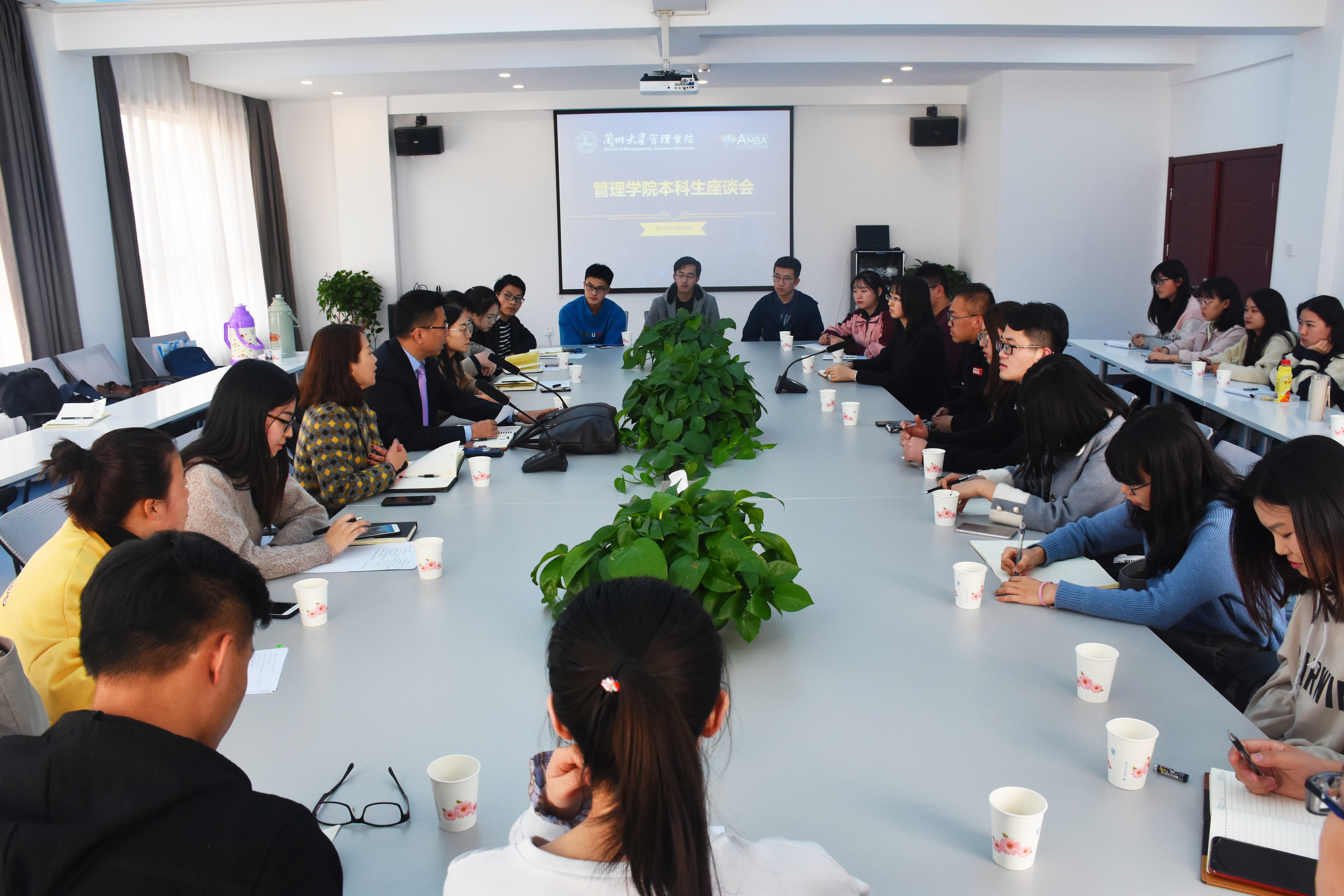 为了深入贯彻落实全国教育大会、新时代全国高等学校本科教育工作会议精神,积极推进本科教育教学一体化的试点学院改革任务,牢固树立“以学生为中心、以教师为主体”的理念,3月21日下午,在榆中校区学术交流中心二楼会议室,管理学院2019年首期榆中校区“院长工作日”活动顺利举行。管理学院院长何文盛教授出席并主持活动。党委副书记李艳霞、本科生辅导员、教学秘书和25名本科生代表参加座谈。