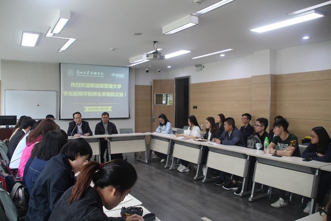 5月7日下午,新加坡管理大学李光前商学院师生来我院交流。新加坡管理大学李光前商学院客座教授秦铭汉、兰州大学管理学院党委书记姚成福出席本次交流活动,学工组、国际合作办公室、MPA教育办公室相关工作人员,新加坡管理大学李光前商学院24名学生、我院大学生领导力与社会责任示范研修班学员代表、MPA学员代表参加活动。