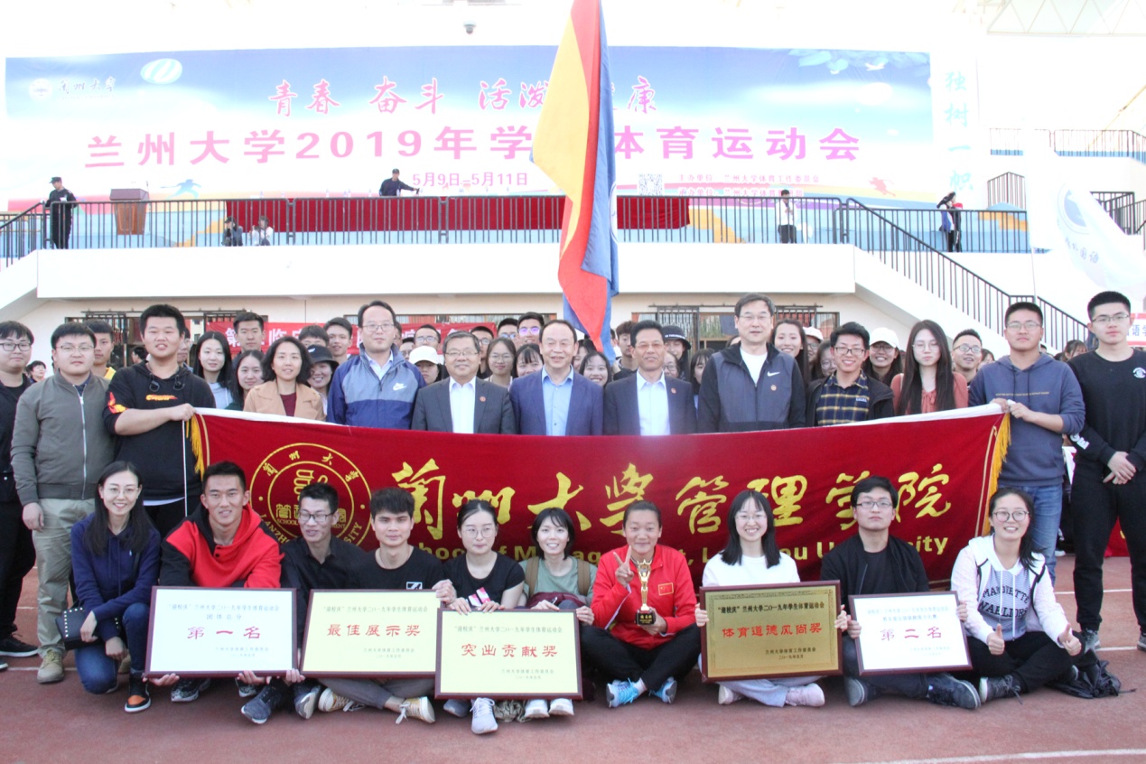 5月9日至5月11日,兰州大学2019年学生体育运动会在榆中校区举行。经过激烈角逐,管理学院代表队最终得分462.5分,荣获团体总分第一名,实现了在兰州大学学生体育运动会上的十六连冠。作为团体总分第一名,学院再度夺得兰州大学“校长杯”,这是管理学院第十六次获得该项荣誉。与此同时,管理学院还包揽了本届运动会所有设立的集体奖,包括“体育道德风尚奖”、“最佳展示奖”、“突出贡献奖”等荣誉,取得了本届运动会大满贯。