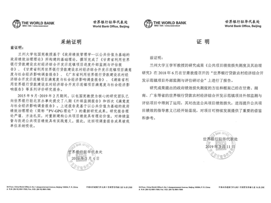 世界银行驻华代表处认为,以包国宪教授为核心的研究团队向世界银行驻华代表处提交的系列研究报告理论严谨、方法扎实,对重新建构公共项目绩效评价体系具有理论价值,对持续监督与改进公共项目绩效具有重要的实践意义。在项目执行期间,团队还受世界银行驻华代表处委托,于2018年6月在敦煌承办专题会议,以主题报告的形式向世界银行项目经理、世行监测评估专家和地方政府有关部门领导介绍以公共价值为基础的政府绩效治理理论范式下的公共项目绩效监测体系、绩效评估体系与绩效治理体系,得到与会人员的强烈反响和一致好评。