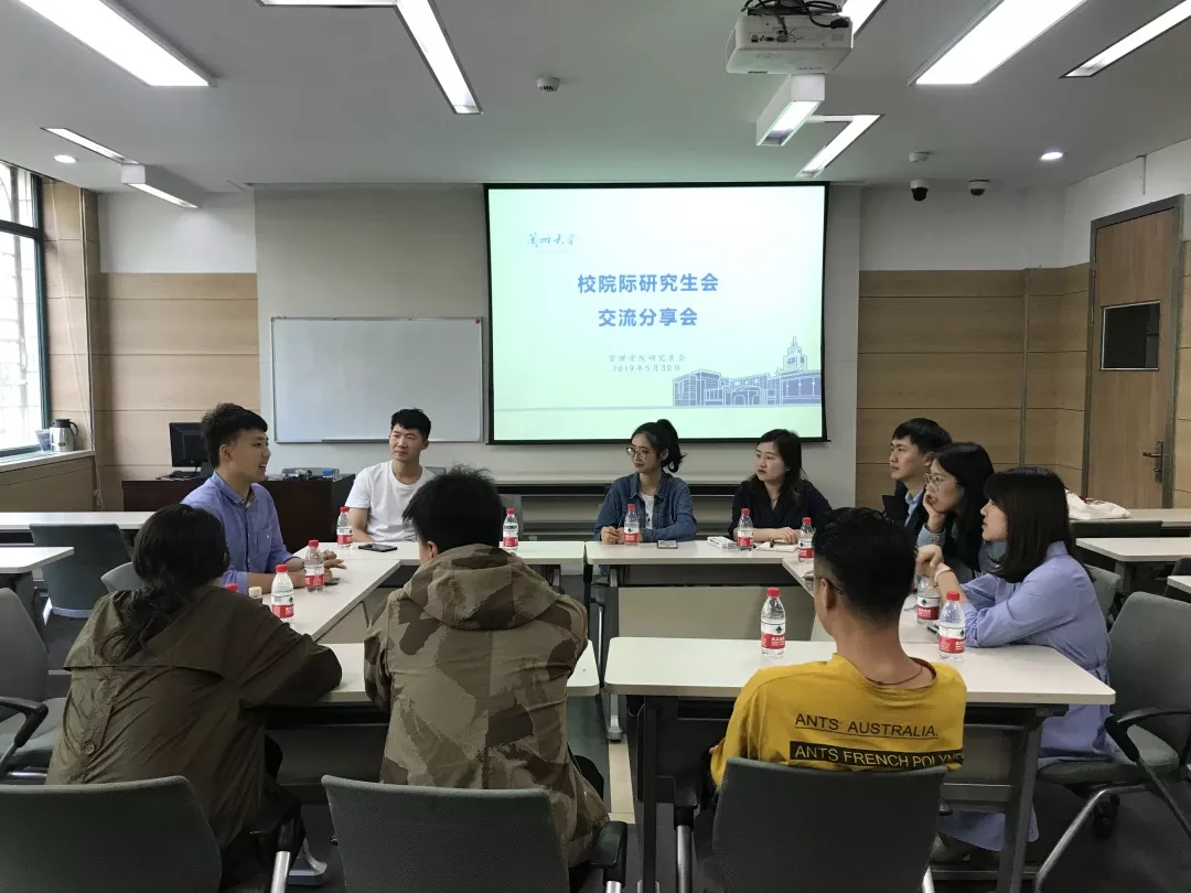 本次交流会由管理学院研究生会主席石栋主持。首先,他简要介绍了举行本次交流会的主要目的,并代表管理学院研究生会热烈欢迎各位到场嘉宾。随后,各学院研会负责人对学院研究生会组织架构及其分工进行了详细介绍,对本学期研会工作开展情况进行相关介绍,并相互提问与答疑,探讨在研会日常工作中遇到的问题及解决办法。