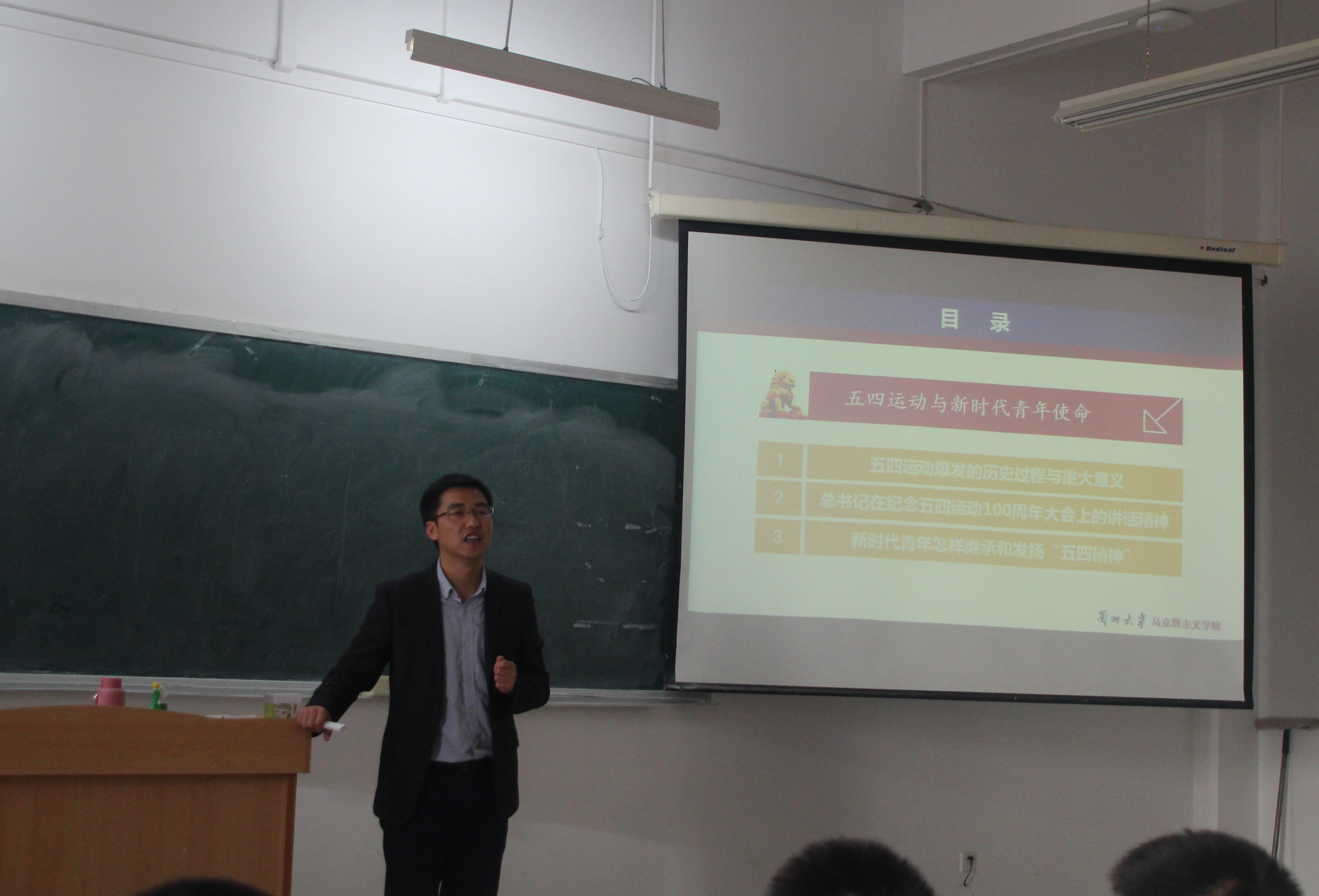 马克思主义学院杨荣国老师以“五四运动与新时代青年使命——学习习近平总书记在纪念五四运动100周年大会上的讲话”为题,为同学们开展了主题报告。他带领同学们一起回顾了五四运动爆发的历史过程和重大意义,学习了习近平总书记在纪念五四运动100周年大会上的重要讲话精神,梳理了在新时代作为大学生党员应该怎样继承和发扬五四精神。