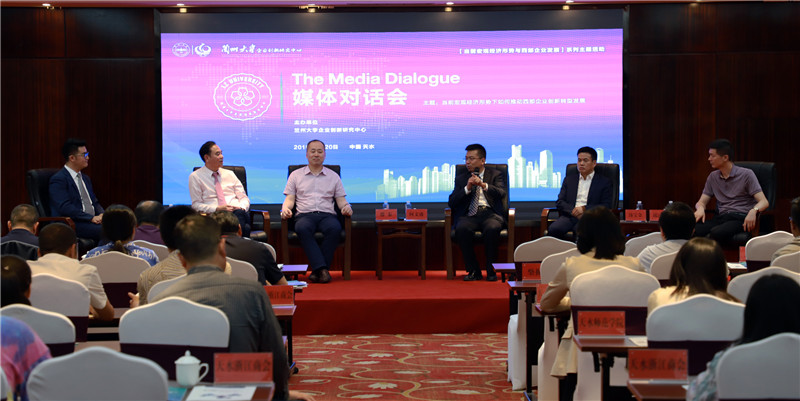 当天上午论坛结束后举行了“当前宏观经济形势下如何推动西部企业创新转型发展”媒体对话会。特邀嘉宾滕泰院长,兰州大学管理学院院长何文盛教授,甘肃华利集团董事长李忠鑫,甘肃金宝集团董事长汤宝金和上海堡基尼服饰有限公司董事长邱国庆就当前宏观经济形势下推动西部企业创新转型发展的思路及对策、民营企业发展环境的“堵点”、如何落实营商环境等问题与新华社甘肃分社、经济日报甘肃记者站、中新社甘肃分社、中央人民广播电台甘肃记者站、中国社会科学报、新华网等媒体记者进行了深入对话探讨。