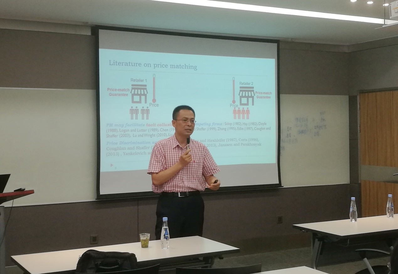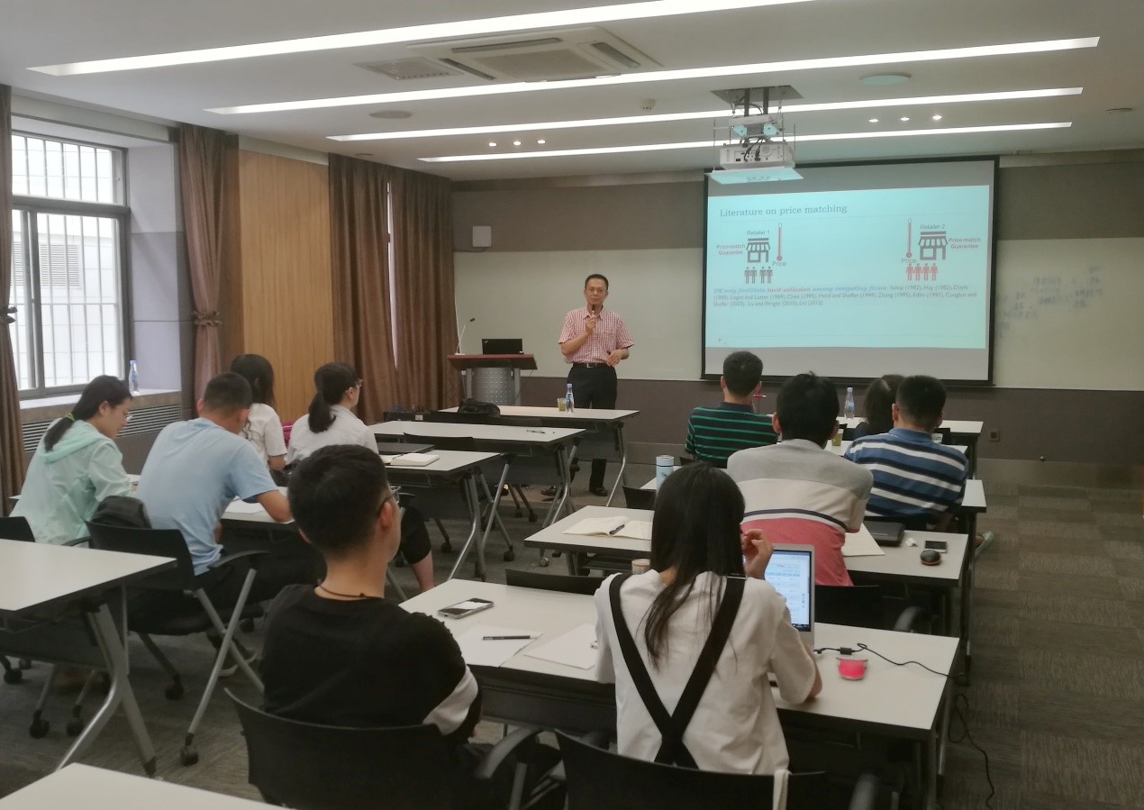 应运营与财务管理研究所洪兆富副教授邀请,7月11日上午9:00,美国圣克拉拉大学蔡港树教授于齐云楼204室为管理学院师生带来题为《Who Benefits From Banning Discriminatory Wholesale Pricing When Retailers Can Price Match?》的学术讲座。本次讲座由管理学院青年教授王康周主持。