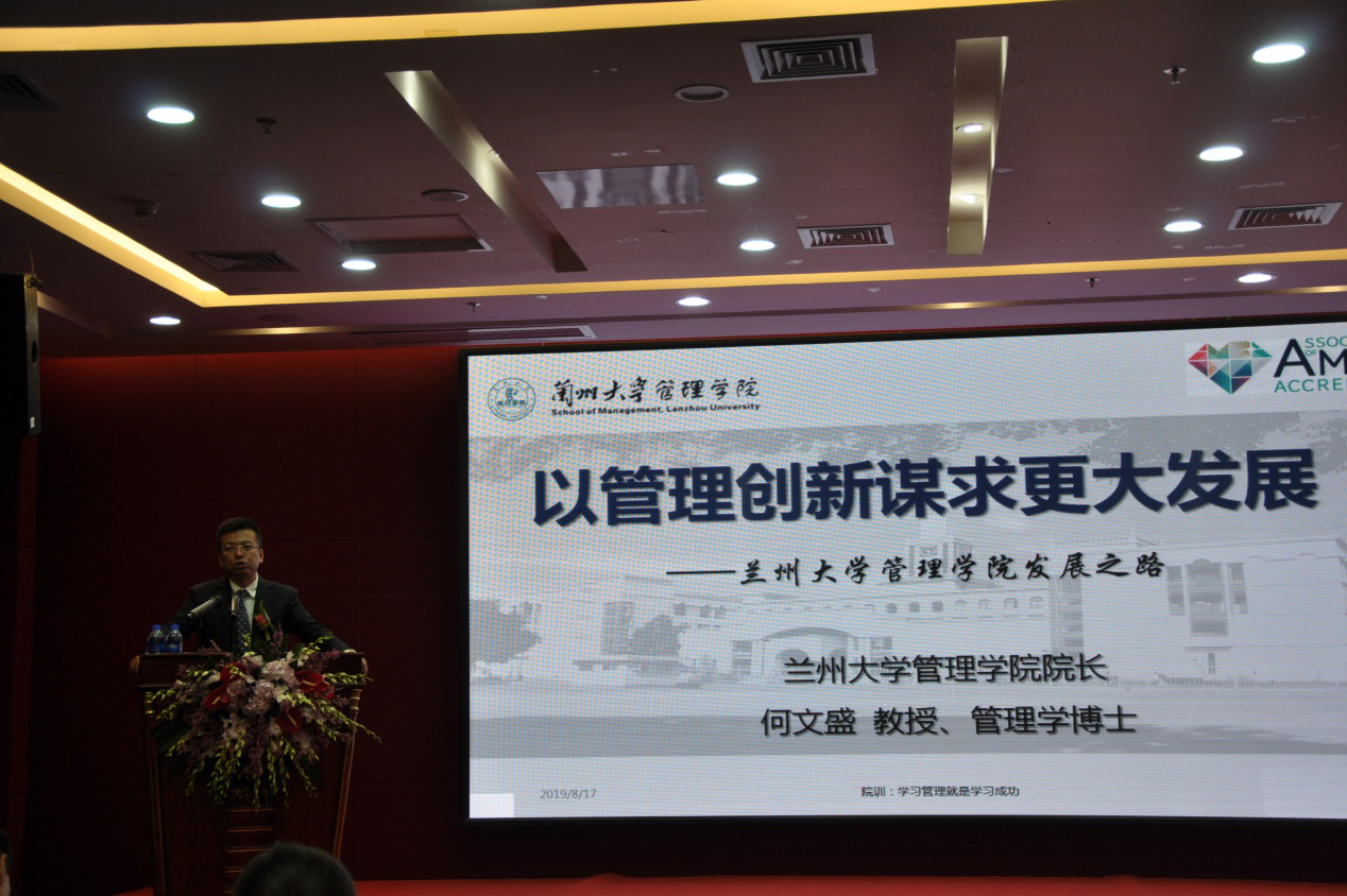 典礼结束后,何文盛院长做了《以管理创新谋求更大发展——兰州大学管理学院发展之路》为主题的专题讲座,从学科建设、科学研究、人才培养、社会服务等方面向全体新生讲述了管理学院15年的发展历程。