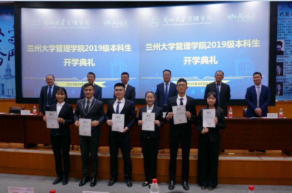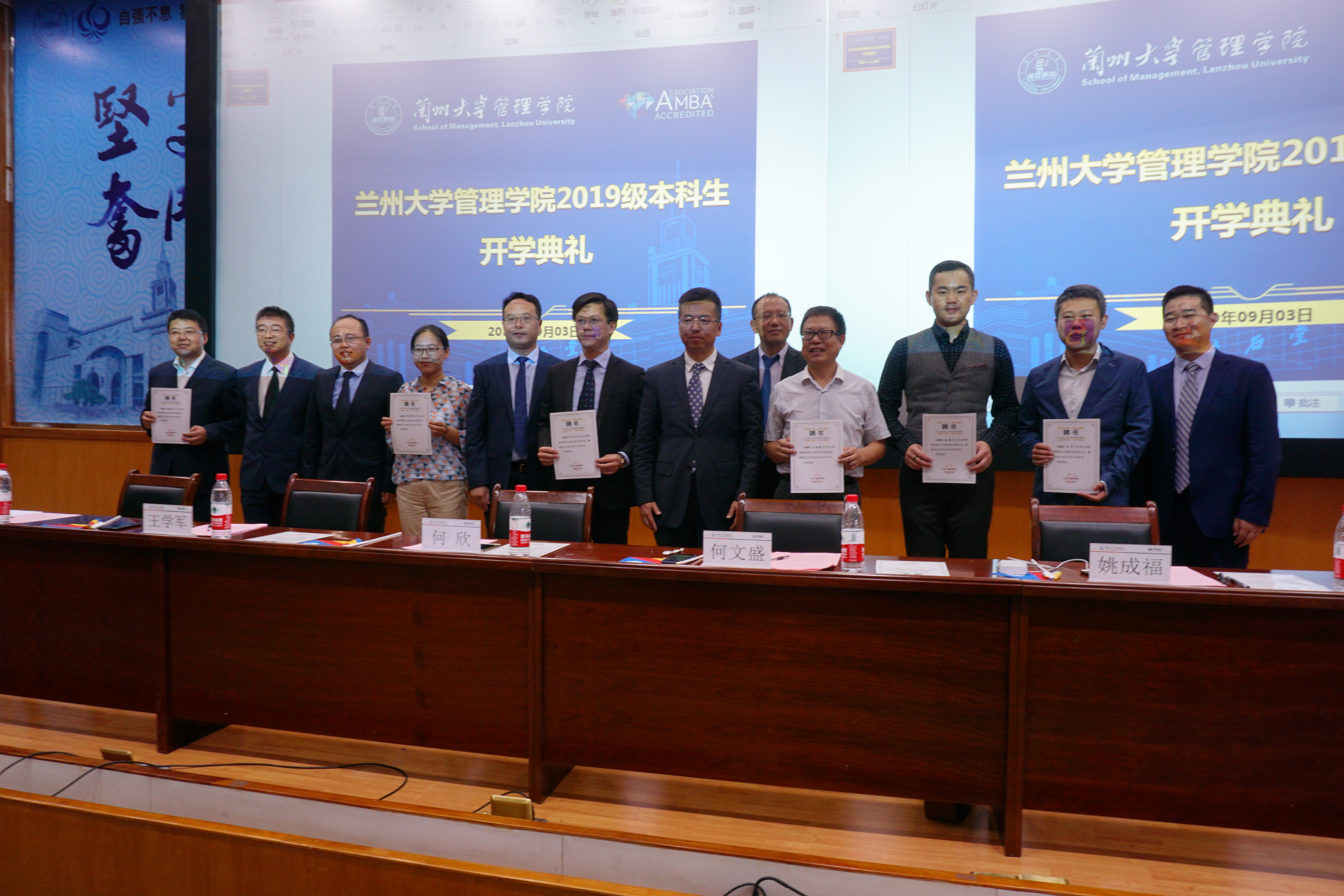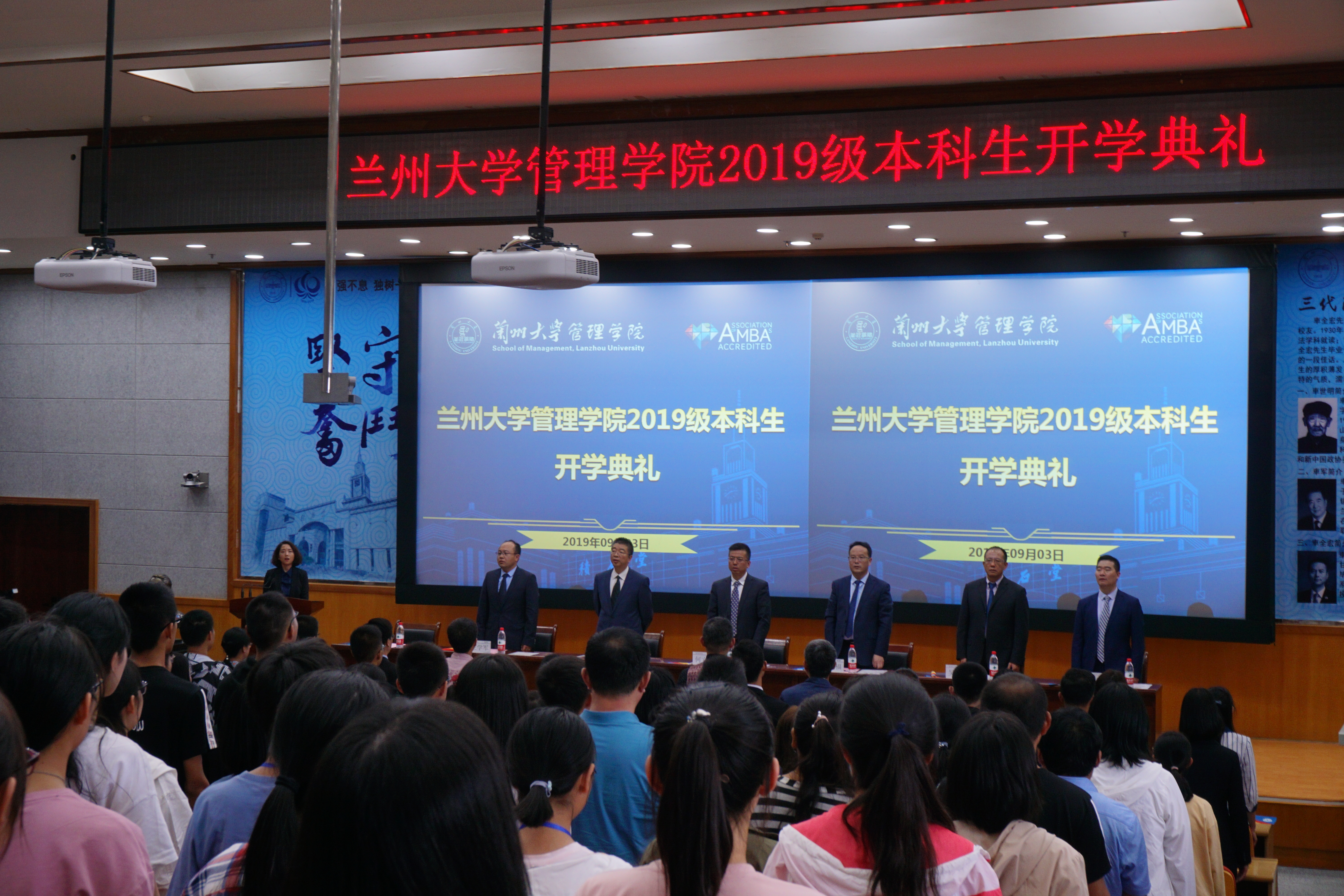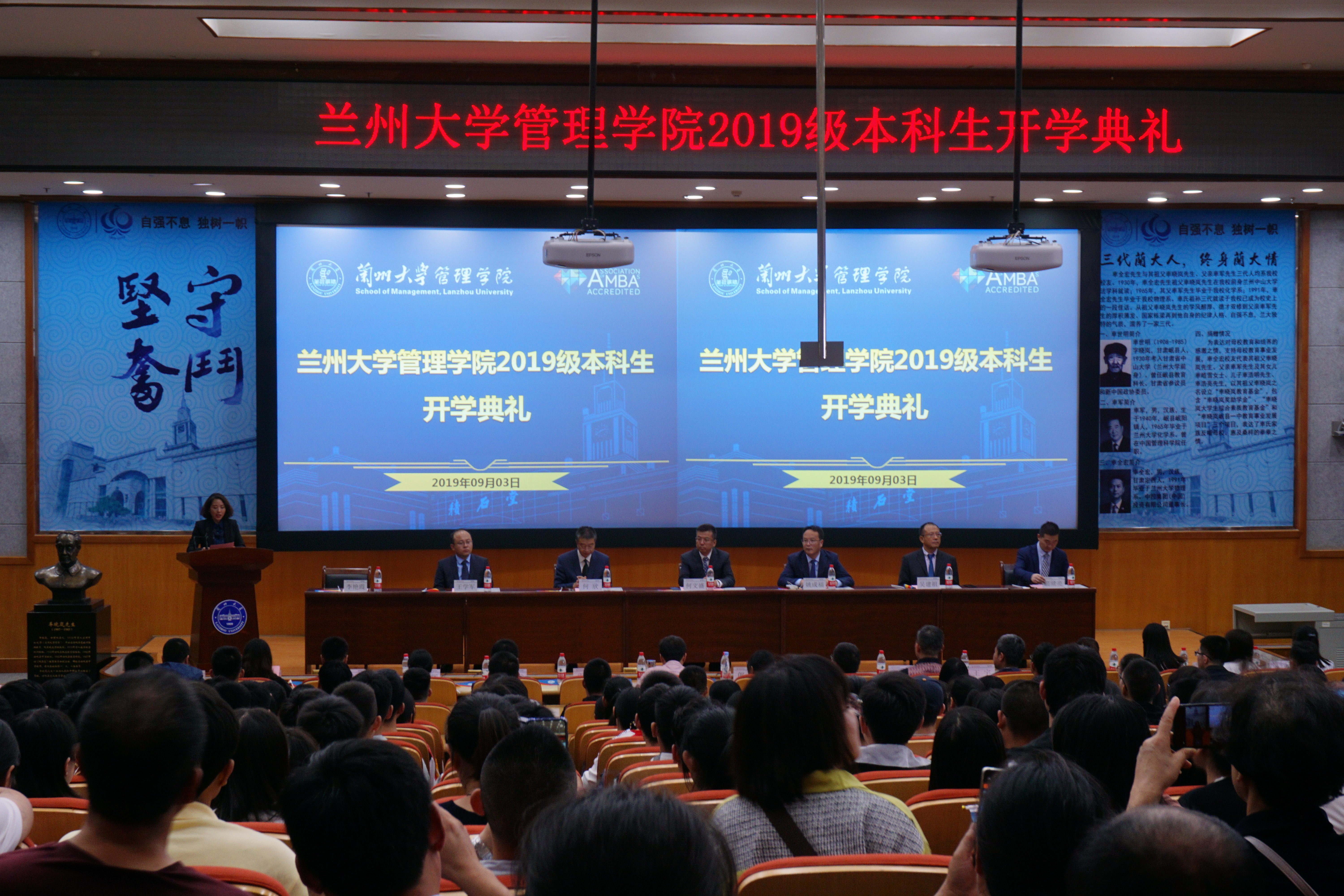 9月3日下午,管理学院2019级本科生开学典礼在榆中校区天山堂C302举行。院长何文盛、党委书记姚成福,副院长何欣、吴建祖、王学军、苗绪亮,系主任、新生班主任、教师代表,辅导员、教学秘书、高年级学生代表、2019级全体新生及部分新生家长共计400余人参加了典礼。典礼由学院党委副书记李艳霞主持。