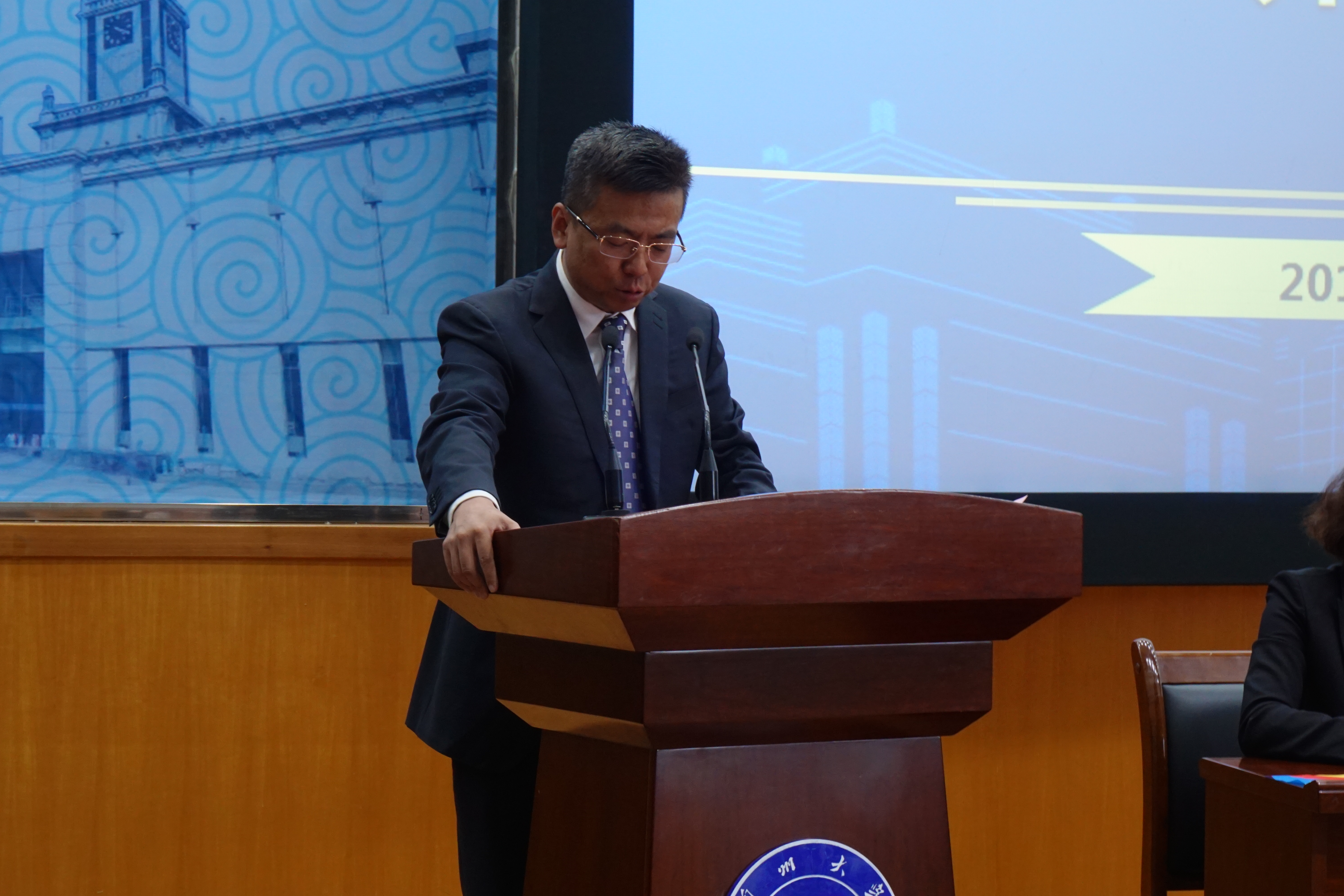 教师代表宗胜亮副教授在发言中,从“努力奋斗”、“坚守初心”、“学会取舍”、“懂得感恩”四个方面,勉励新生尽快适应大学的学习和生活,四年间积极进取、努力拼搏,早日成长为国家栋梁。