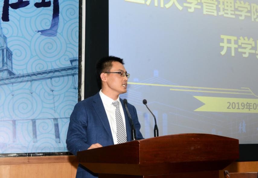 院长何文盛教授在讲话中代表管理学院全体师生向新同学的到来表示欢迎和祝贺,介绍了兰州大学的基本情况和管理学院建院十五年来各项事业发展所取得的显著成绩。并向同学们提出了四点希望和建议:明确一个中心——读书,希望同学们读书要以“钻研问题”为导向、以系统性专业知识为主导并遵循博览群书的原则;完成两项任务——成长与成才,希望同学们在成长的道路上始终保有健康向上的心态、拥有坚强的心理素质和奉行乐观开朗的人生态度,在成才的道路上通过形成独立的思考和批判性思维能力培养独立的人格精神;培养三种意识——责任意识、全球意识和精英意识,希望同学们积极践行领导力和社会责任,努力做好“世界公民”,积极参与国际交流,立志成为管理精英、管理学术精英或高层次管理技术专家;兼具四种品德——善良、感恩、包容和正直,希望同学们常怀善念、常做善行、常结善果,感恩于心、回报于行,用宽容豁达的心原谅可容之言、饶恕可容之事、包涵可容之人,志毋虚邪、行必正直。他还勉励同学们好好享受“萃英山下好读书”的宁静致远,明确自身发展方向,做好大学生活规划,实现全面成长成才,努力成为未来文明的引领者、社会进步的推动者和人类财富的创造者。